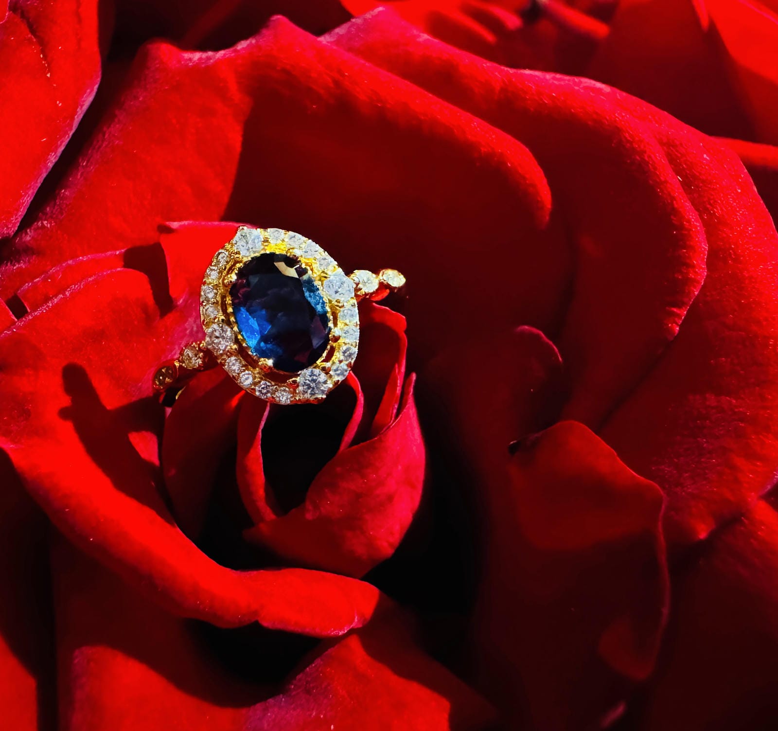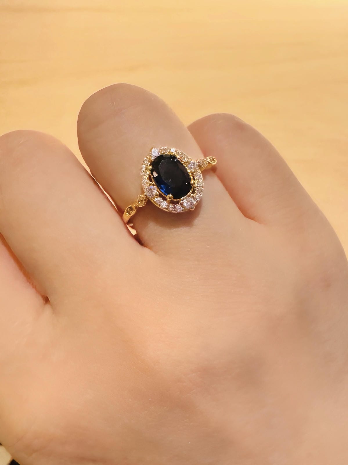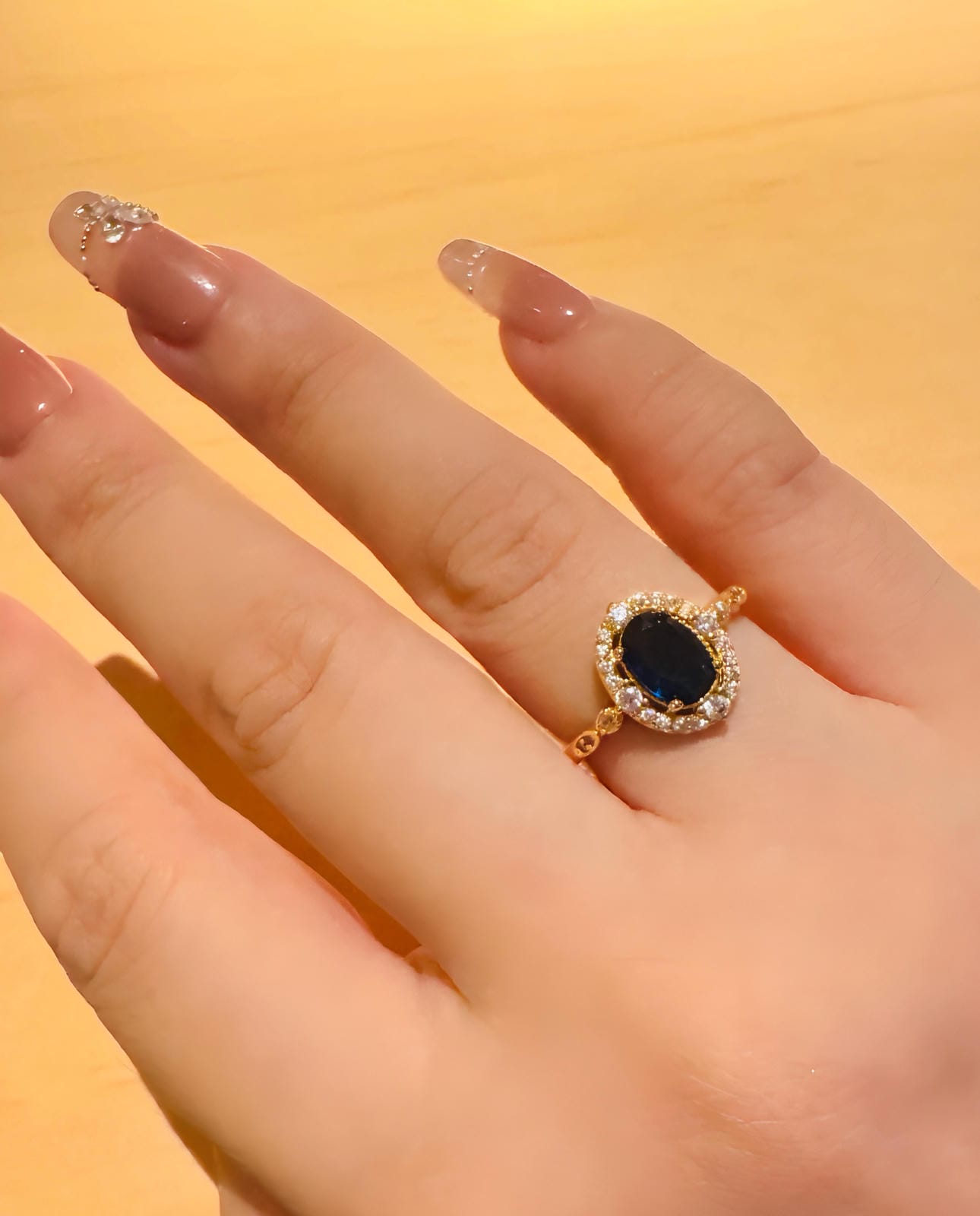 Forged from a liquefied azure sky and alchemized into eternal form, this ring captures a celestial secret within its delicate band. Wear the Azure Elixir, where potent magic meets sublime beauty.