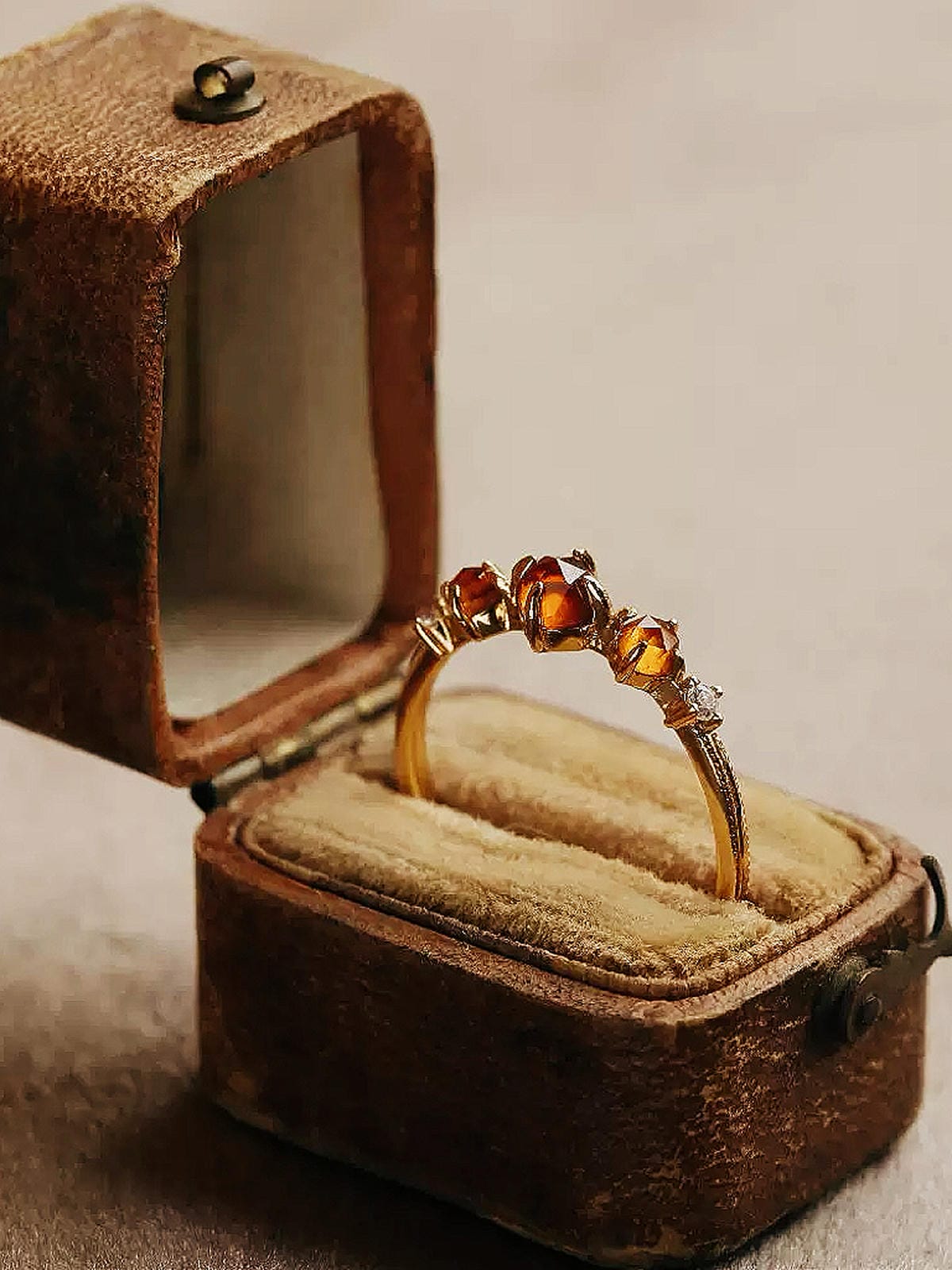 A captured sun dog, suspended in time. Three points of solar gold gleam with the mystery of ice crystals and forgotten skies.